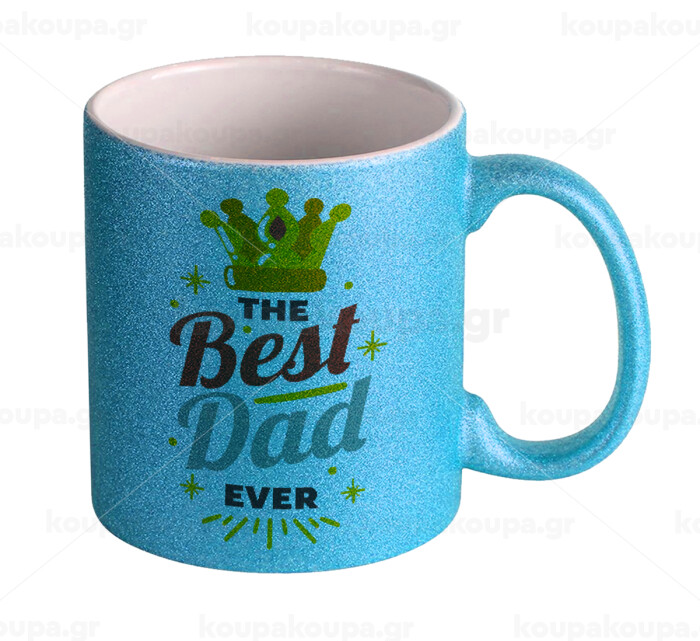 The Best DAD ever, Κούπα Σιέλ Glitter που γυαλίζει, κεραμική, 330ml