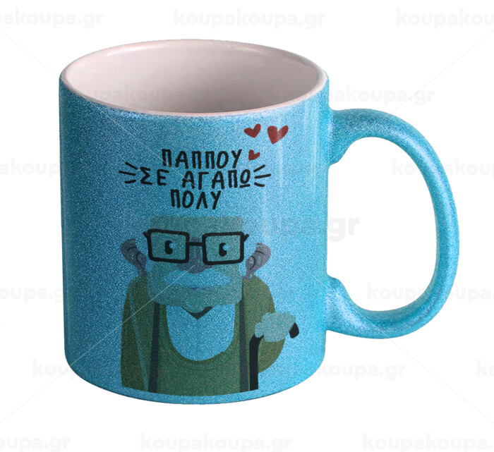 Παππού σε αγαπώ πολύ!, Κούπα Σιέλ Glitter που γυαλίζει, κεραμική, 330ml