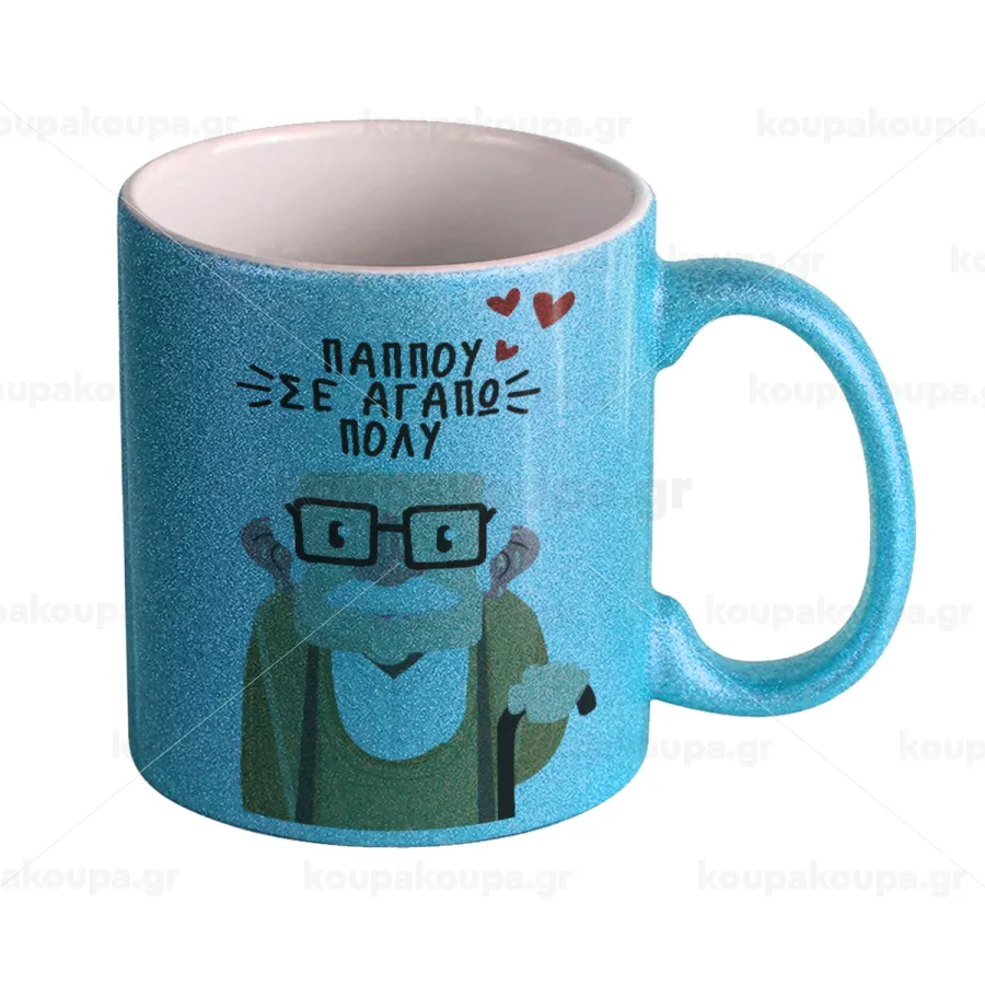 Παππού σε αγαπώ πολύ!, Κούπα Σιέλ Glitter που γυαλίζει, κεραμική, 330ml