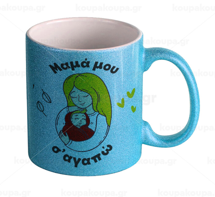 Μανούλα σ'αγαπώ αγκαλιά!, Κούπα Σιέλ Glitter που γυαλίζει, κεραμική, 330ml