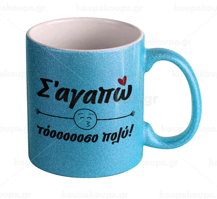 Σ΄ αγαπώ τόοοοοοσο πολύ!!!, Κούπα Σιέλ Glitter που γυαλίζει, κεραμική, 330ml