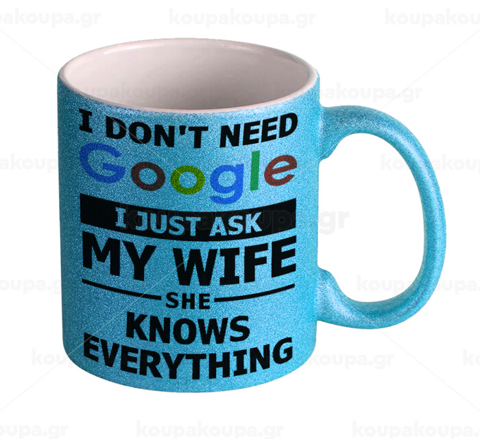 I don't need Google, just ask my WIFE, Κούπα Σιέλ Glitter που γυαλίζει, κεραμική, 330ml
