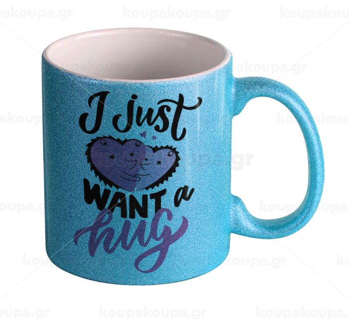 I Just want a hug!, Κούπα Σιέλ Glitter που γυαλίζει, κεραμική, 330ml