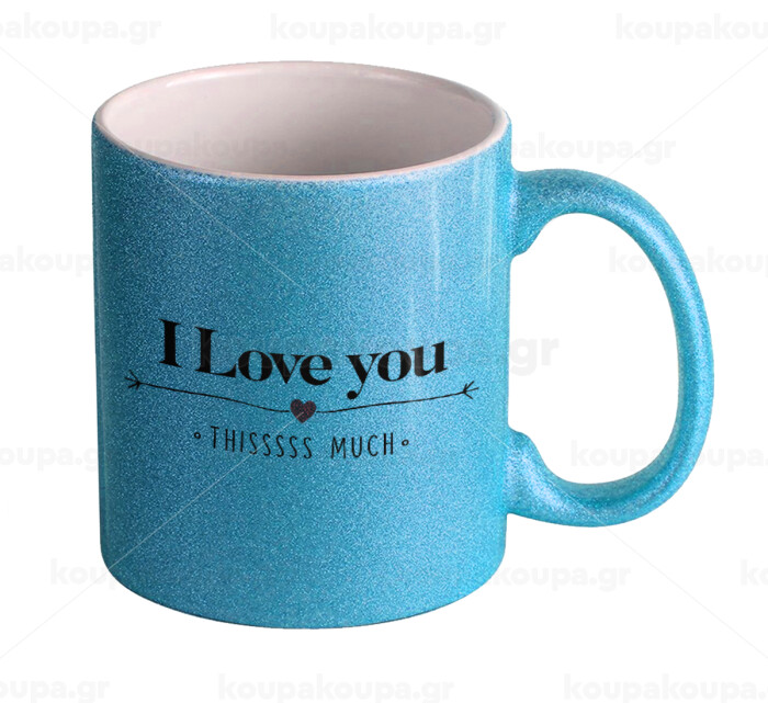 I Love you thisssss much, Κούπα Σιέλ Glitter που γυαλίζει, κεραμική, 330ml