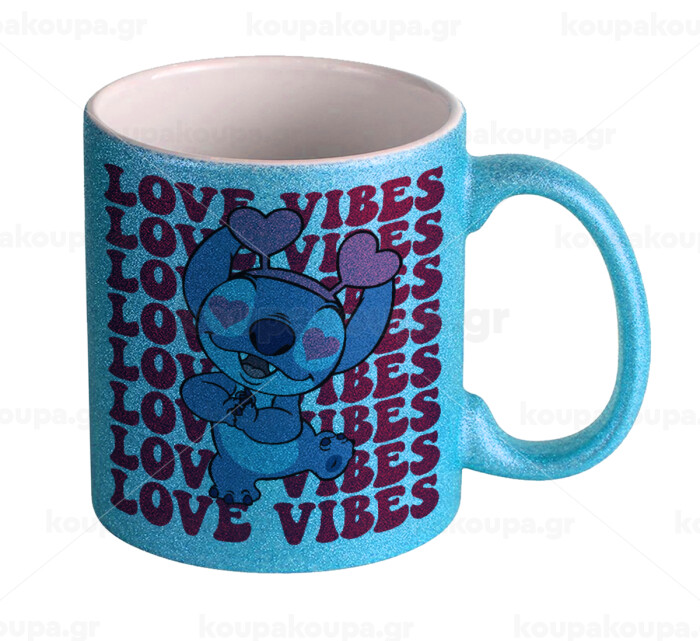 Lilo & Stitch Love vibes, Κούπα Σιέλ Glitter που γυαλίζει, κεραμική, 330ml
