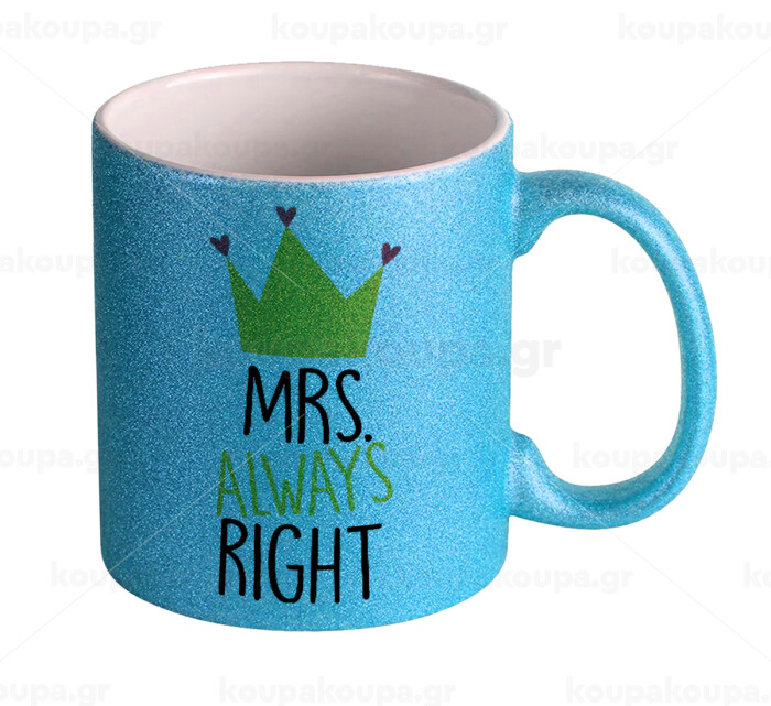Mrs "Always" right, Κούπα Σιέλ Glitter που γυαλίζει, κεραμική, 330ml