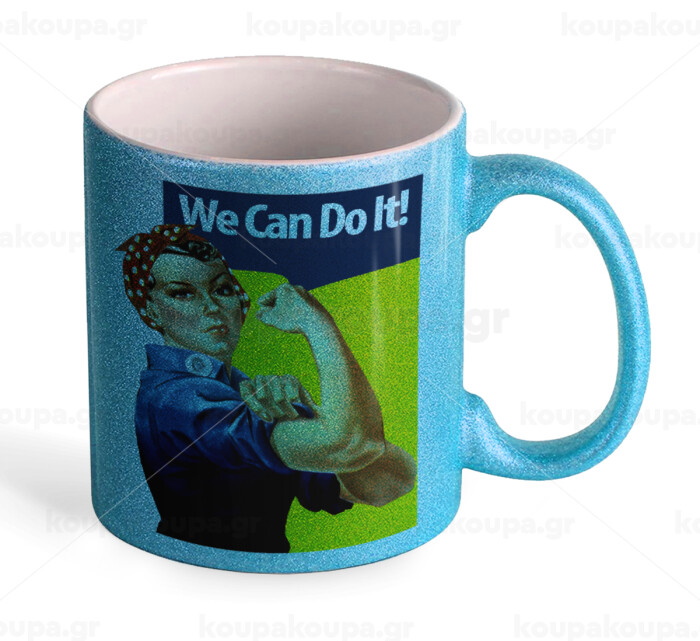 Rosie we can do it!, Κούπα Σιέλ Glitter που γυαλίζει, κεραμική, 330ml