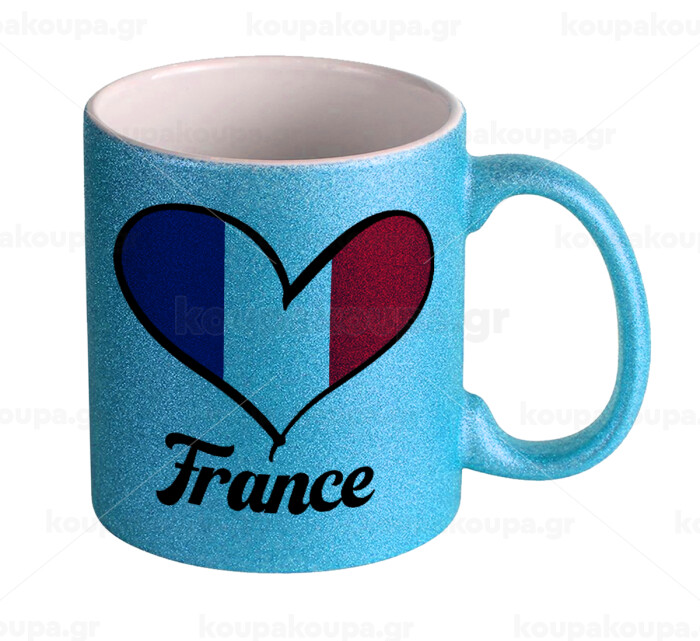 France flag, Κούπα Σιέλ Glitter που γυαλίζει, κεραμική, 330ml
