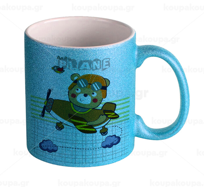 Kids Plane, Κούπα Σιέλ Glitter που γυαλίζει, κεραμική, 330ml