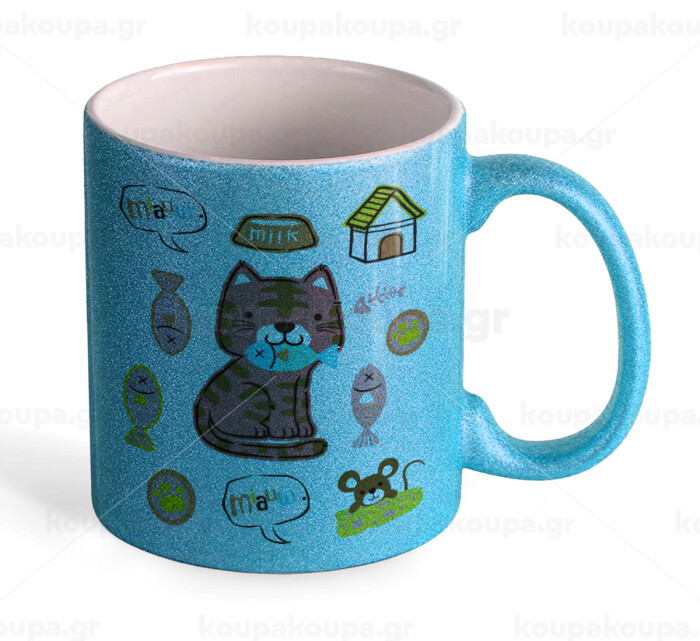 Cats and Fishes, Κούπα Σιέλ Glitter που γυαλίζει, κεραμική, 330ml