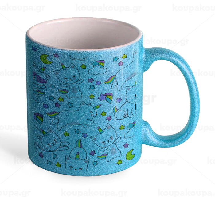 Cats unicorns, Κούπα Σιέλ Glitter που γυαλίζει, κεραμική, 330ml