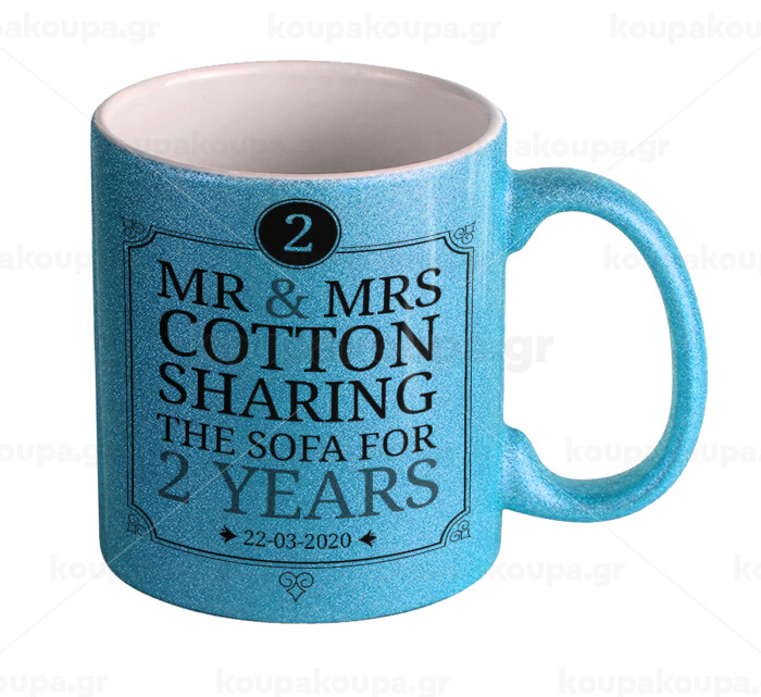 Mr & Mrs Sharing the sofa, Κούπα Σιέλ Glitter που γυαλίζει, κεραμική, 330ml