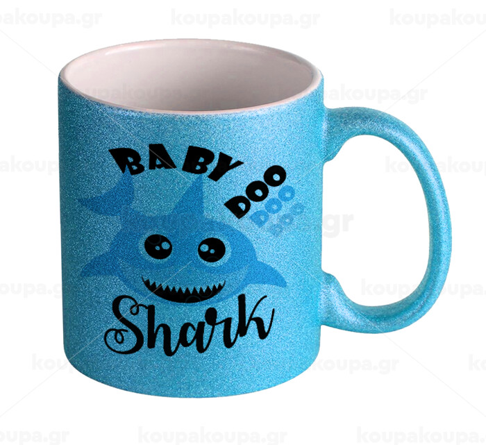 Baby Shark (boy), Κούπα Σιέλ Glitter που γυαλίζει, κεραμική, 330ml