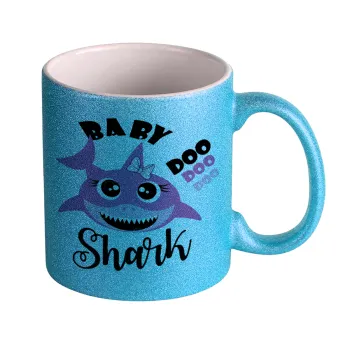 Baby Shark (girl), Κούπα Σιέλ Glitter που γυαλίζει, κεραμική, 330ml