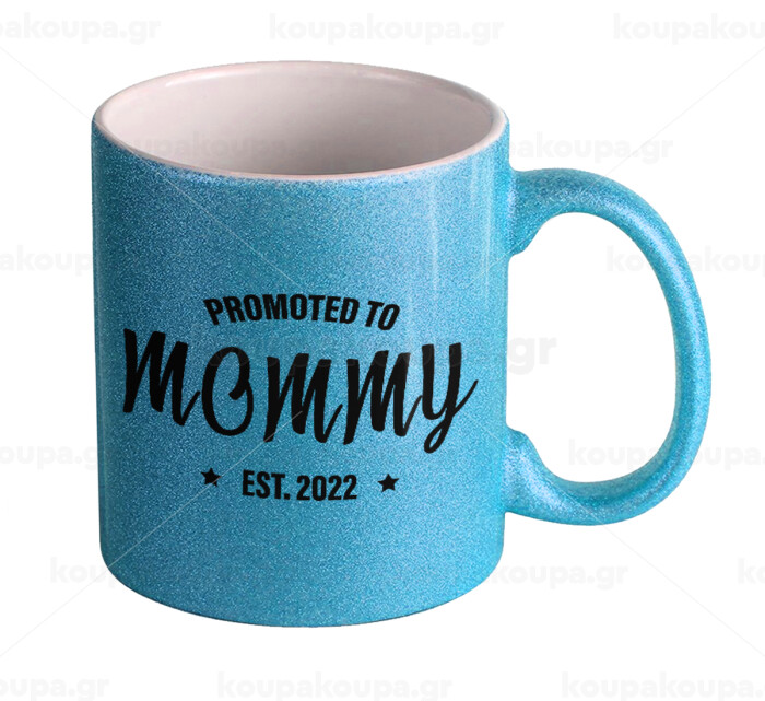 Promoted to Mommy, Κούπα Σιέλ Glitter που γυαλίζει, κεραμική, 330ml