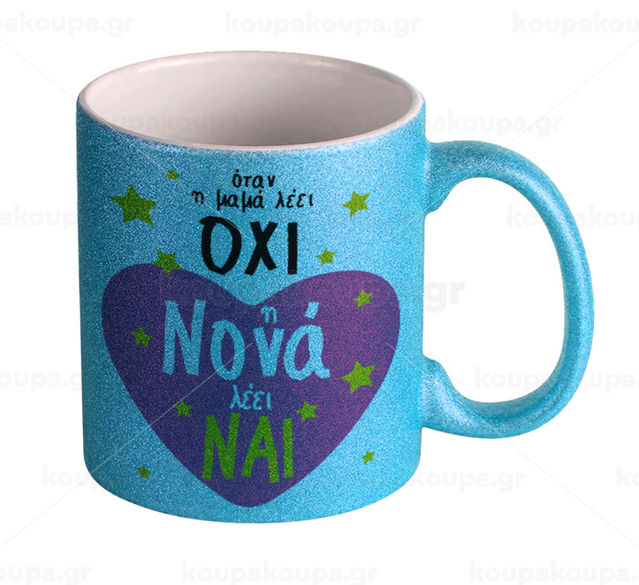 Η νονά λέει ναι!!!, Κούπα Σιέλ Glitter που γυαλίζει, κεραμική, 330ml