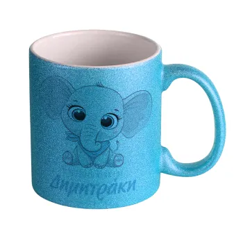Η νονά μου, ελεφαντάκι γαλάζιο, Κούπα Σιέλ Glitter που γυαλίζει, κεραμική, 330ml