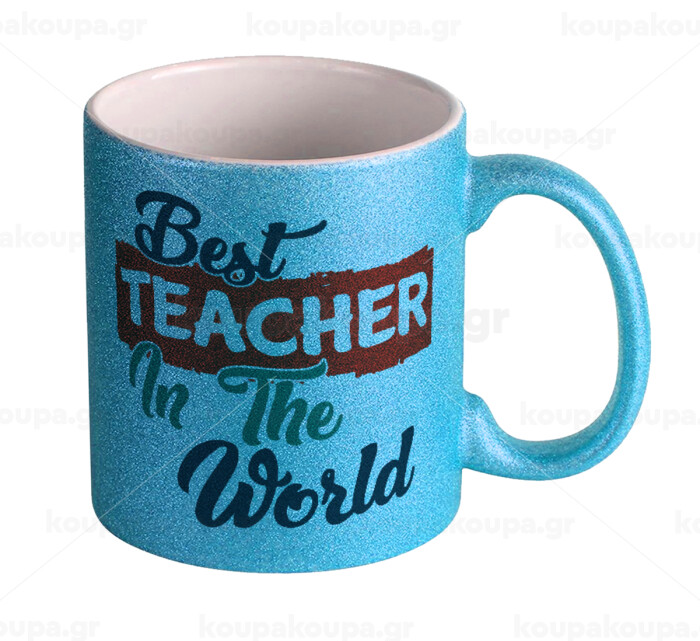 Best teacher in the World!, Κούπα Σιέλ Glitter που γυαλίζει, κεραμική, 330ml