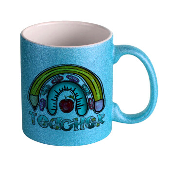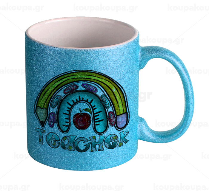 Teacher, Κούπα Σιέλ Glitter που γυαλίζει, κεραμική, 330ml