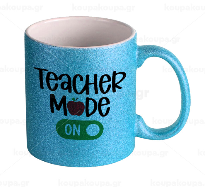 Teacher mode ON, Κούπα Σιέλ Glitter που γυαλίζει, κεραμική, 330ml