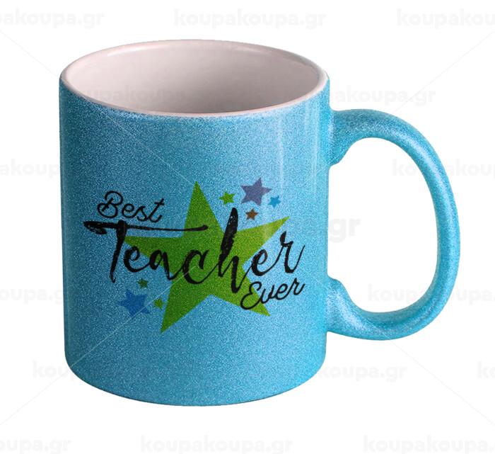 Teacher super star!!!, Κούπα Σιέλ Glitter που γυαλίζει, κεραμική, 330ml