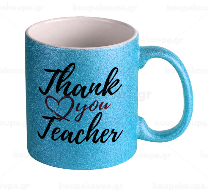 Thank you teacher, Κούπα Σιέλ Glitter που γυαλίζει, κεραμική, 330ml