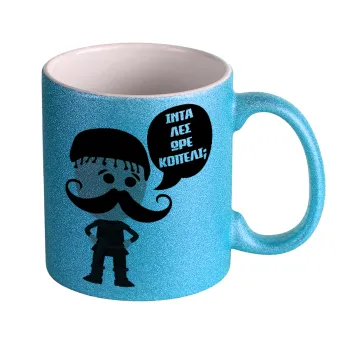 Κρητικός "Ίντα λες ωρέ κοπέλι", Κούπα Σιέλ Glitter που γυαλίζει, κεραμική, 330ml