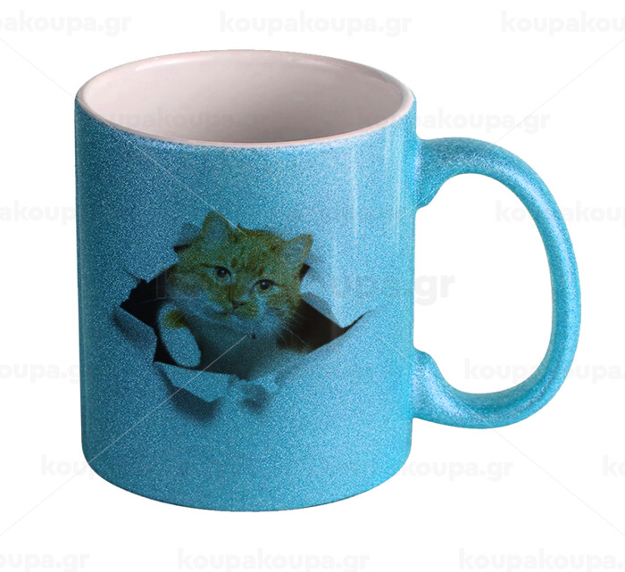 Cat cracked, Κούπα Σιέλ Glitter που γυαλίζει, κεραμική, 330ml