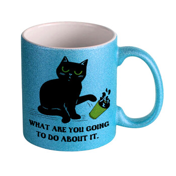 CAT, what are you going to do about it!, Κούπα Σιέλ Glitter που γυαλίζει, κεραμική, 330ml