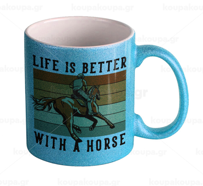 Life is Better with a Horse, Κούπα Σιέλ Glitter που γυαλίζει, κεραμική, 330ml