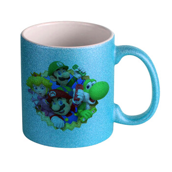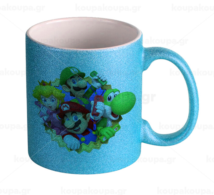 Super mario and Friends, Κούπα Σιέλ Glitter που γυαλίζει, κεραμική, 330ml