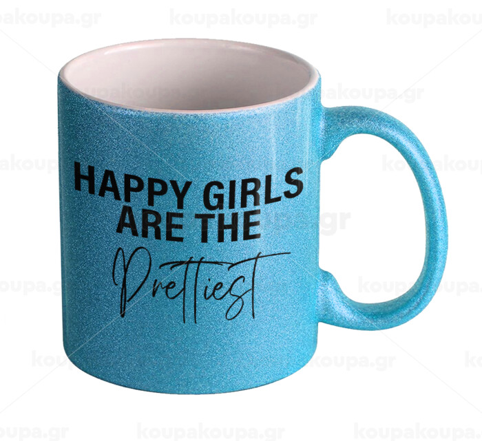 Happy girls are the prettiest, Κούπα Σιέλ Glitter που γυαλίζει, κεραμική, 330ml