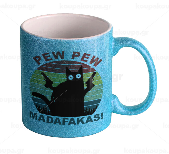 PEW PEW madafakas, Κούπα Σιέλ Glitter που γυαλίζει, κεραμική, 330ml