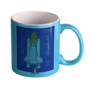 Nasa Space Shuttle, Κούπα Σιέλ Glitter που γυαλίζει, κεραμική, 330ml