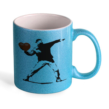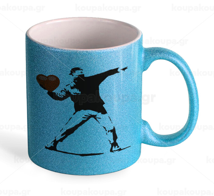 Banksy (The heart thrower), Κούπα Σιέλ Glitter που γυαλίζει, κεραμική, 330ml