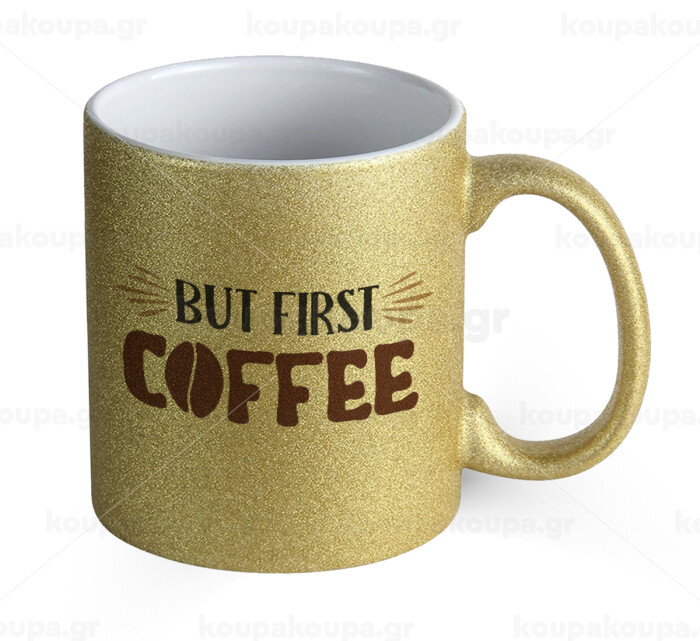 But first Coffee, Κούπα Χρυσή Glitter που γυαλίζει, κεραμική, 330ml