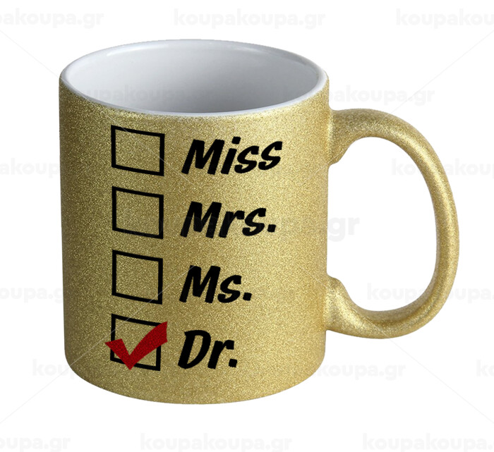 Miss, Mrs, Ms, DR, Κούπα Χρυσή Glitter που γυαλίζει, κεραμική, 330ml