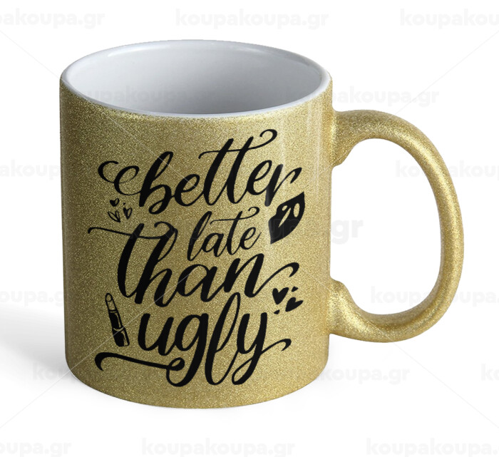 Better late than ugly, Κούπα Χρυσή Glitter που γυαλίζει, κεραμική, 330ml