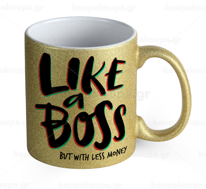 Like a boss, but with less money!!!, Κούπα Χρυσή Glitter που γυαλίζει, κεραμική, 330ml