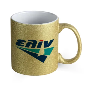 Πρατήριο καυσίμων ΕΛΙΝ, Κούπα Χρυσή Glitter που γυαλίζει, κεραμική, 330ml