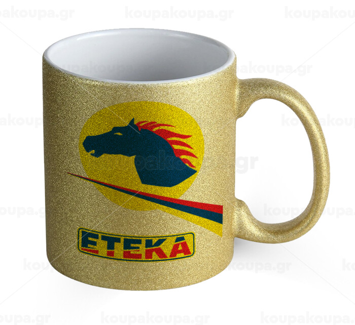 Πρατήριο καυσίμων ETEKA, Κούπα Χρυσή Glitter που γυαλίζει, κεραμική, 330ml