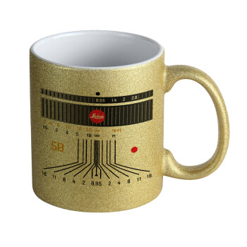 Leica Lens, Κούπα Χρυσή Glitter που γυαλίζει, κεραμική, 330ml