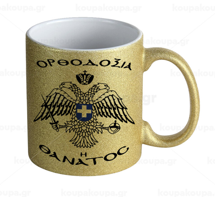 Ορθοδοξία ή Θάνατος, Κούπα Χρυσή Glitter που γυαλίζει, κεραμική, 330ml
