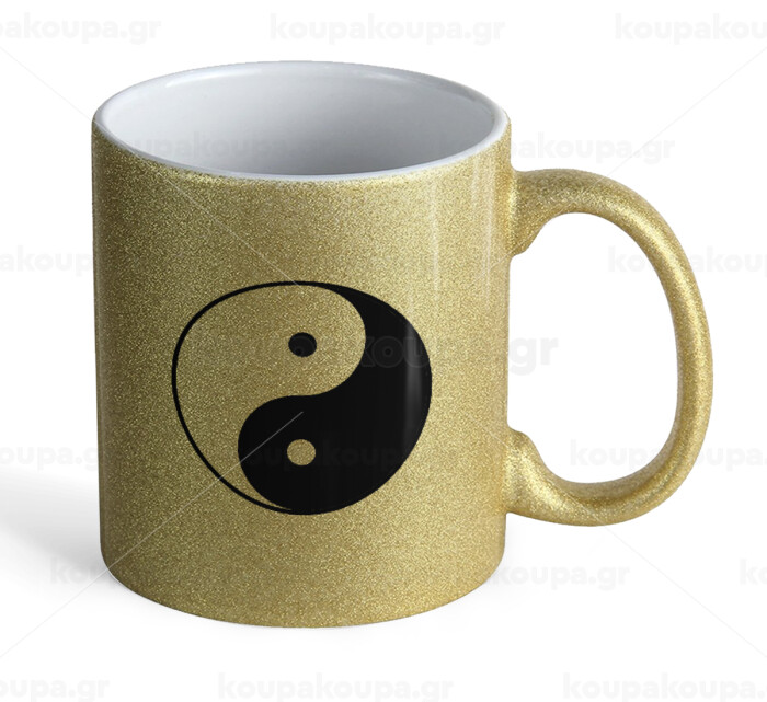 Yin Yang, Κούπα Χρυσή Glitter που γυαλίζει, κεραμική, 330ml