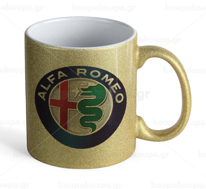 Alfa Romeo, Κούπα Χρυσή Glitter που γυαλίζει, κεραμική, 330ml