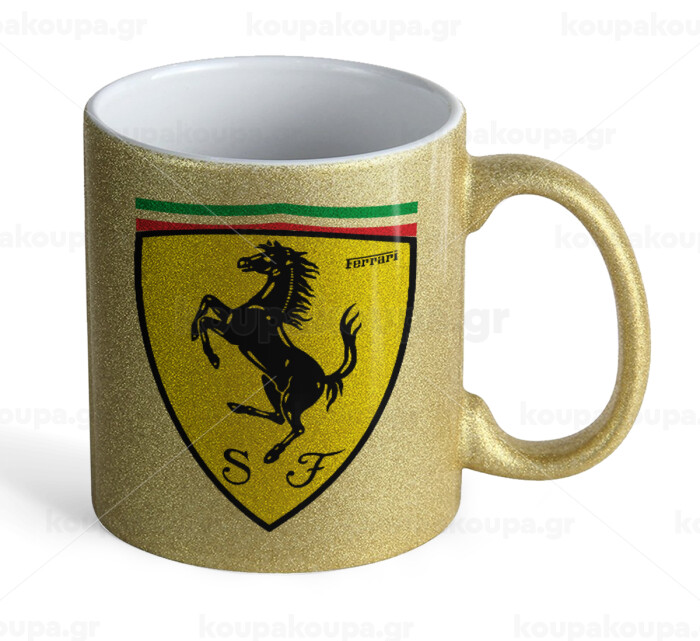 Ferrari, Κούπα Χρυσή Glitter που γυαλίζει, κεραμική, 330ml