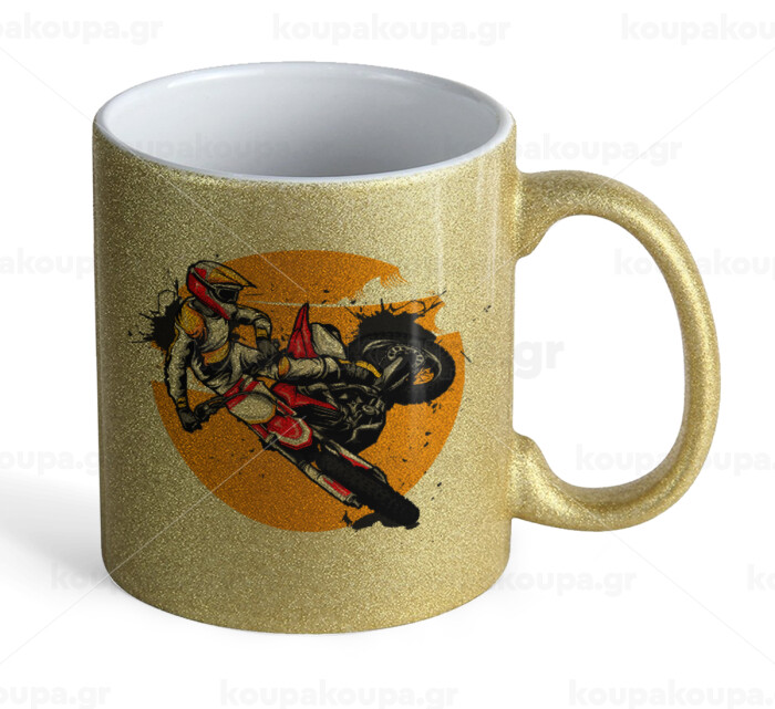 Motocross, Κούπα Χρυσή Glitter που γυαλίζει, κεραμική, 330ml