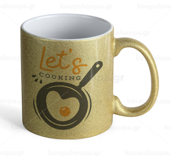 Let's cooking, Κούπα Χρυσή Glitter που γυαλίζει, κεραμική, 330ml