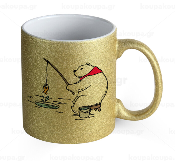 Bear fishing, Κούπα Χρυσή Glitter που γυαλίζει, κεραμική, 330ml
