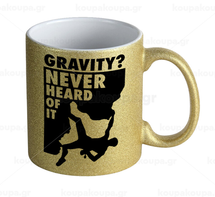 Gravity? Never heard of that!, Κούπα Χρυσή Glitter που γυαλίζει, κεραμική, 330ml